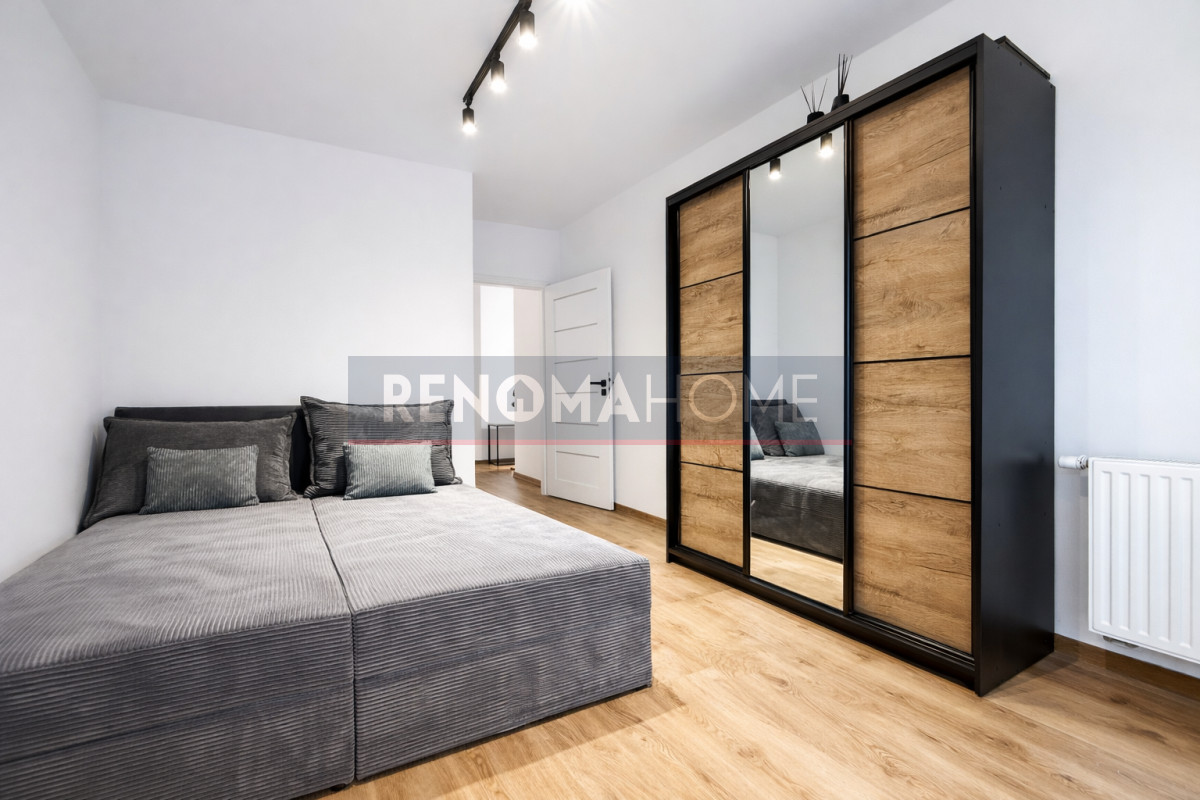 Mieszkanie jest całkowicie umeblowane, składa się z kuchni połączonej w przedpokojem w formie aneksu kuchennego, dwóch oddzielnych sypialni oraz łazienki.
