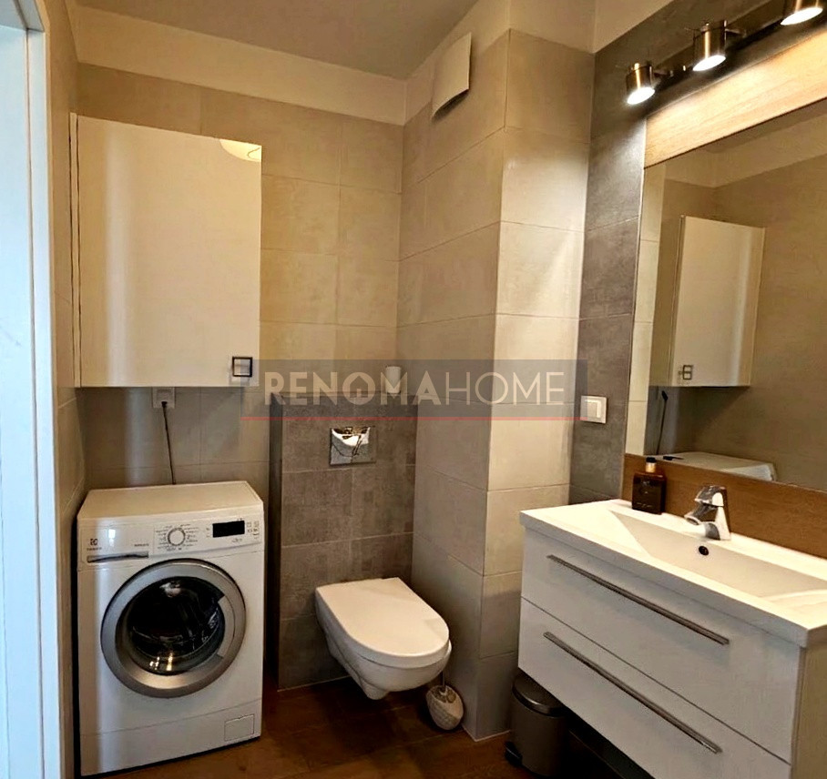 • łazienka z wanną oraz pralką,